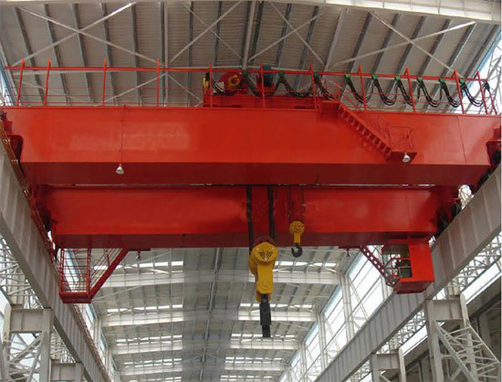 橋式起重機是橫架于車間、倉庫和料場上空進行物料吊運的起重設(shè)備。由于它的兩端坐落在高大的水泥柱或者金屬支架上,形狀似橋。橋式起重機的橋架沿鋪設(shè)在兩側(cè)高架上的軌道縱向運行,可以充分利用橋架下面的空間吊運物料,不受地面設(shè)備的阻礙。它是使用范圍**廣、數(shù)量**多的一種起重機