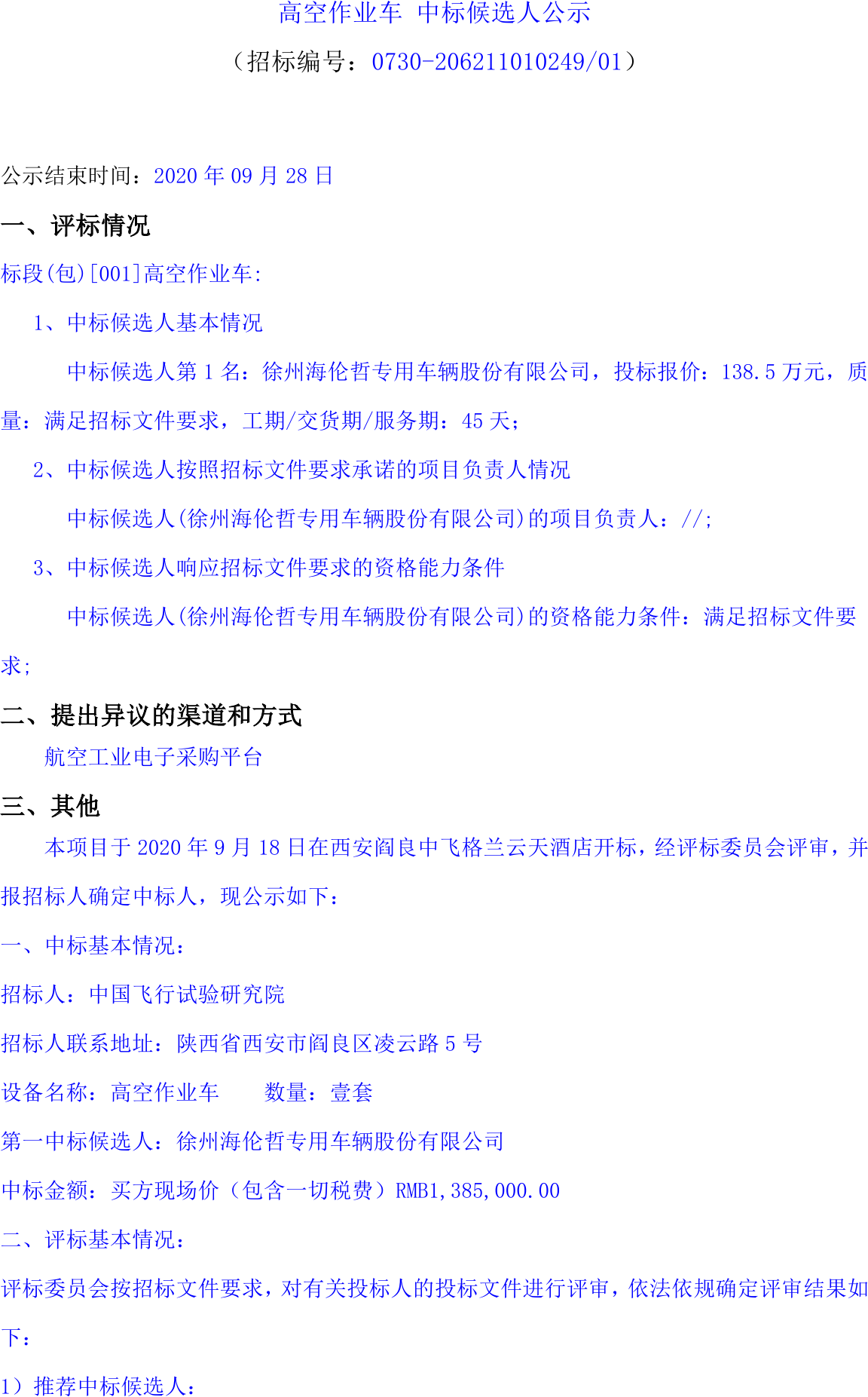 移動(dòng)版:高空作業(yè)車(chē)中標(biāo)候選人公示